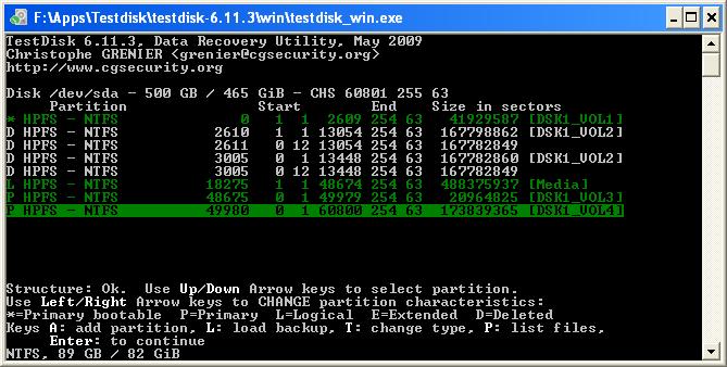 Eine erneute Analyse mit Testdisk (Deeper Search) ergab folgendes Bild: unten angehängte Datei