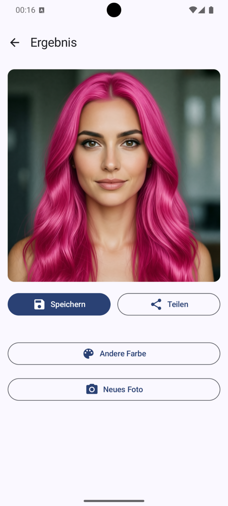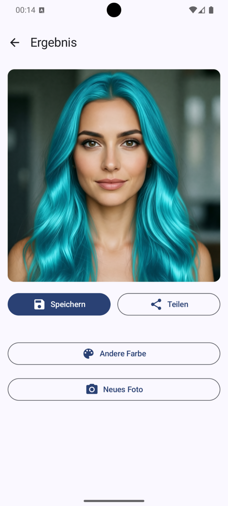 Mit "Hair Color Changer" könnt ihr ein Foto von euch machen (oder aus der Galerie wählen) und eure Haarfarbe per KI in Echtzeit ändern. Ihr wählt einfach eine Farbe über ein Farbrad aus - von Blond über Rot bis Blau ist alles möglich. Die App zeigt euch dann, wie ihr mit der neuen Haarfarbe aussehen würdet.