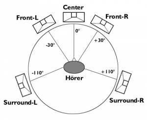 Alternativ würde ich sie aber eventuell auch nicht an der Wand hinter dem Sofa sondern an den Seitenwänden aufstellen. Hiermit hätte man dann das klassische 5.1 Setup wie von Dolby vorgesehen(siehe Bild). Also eine Aufstellung von 110 Grad auf meine Position.