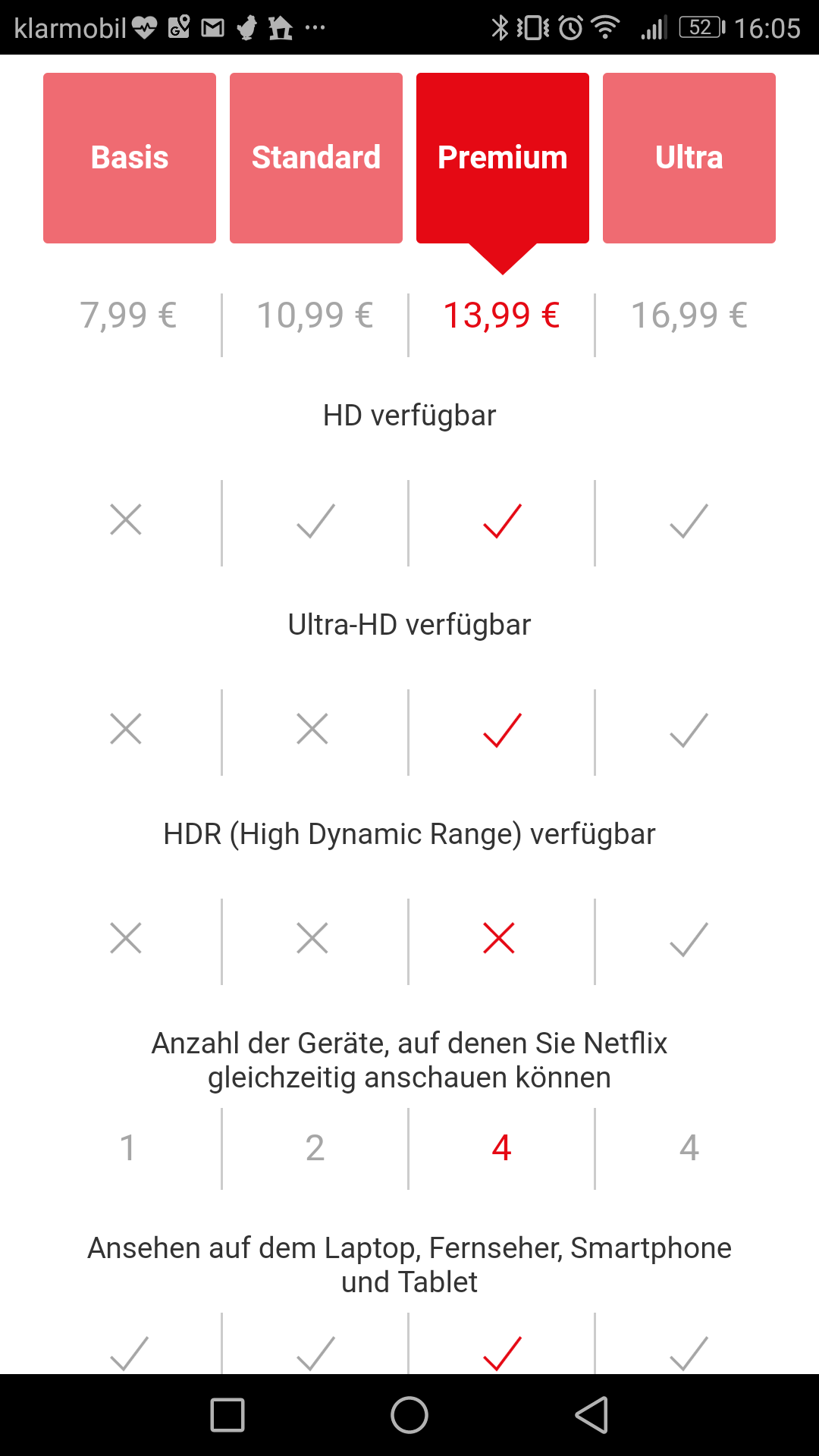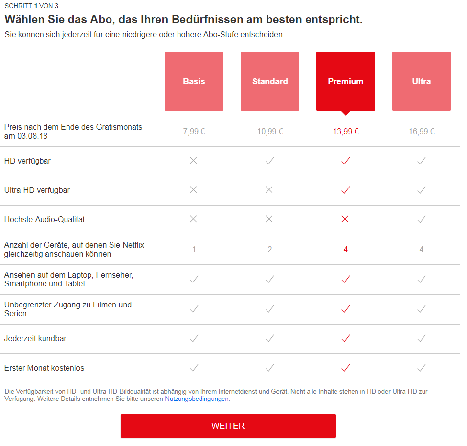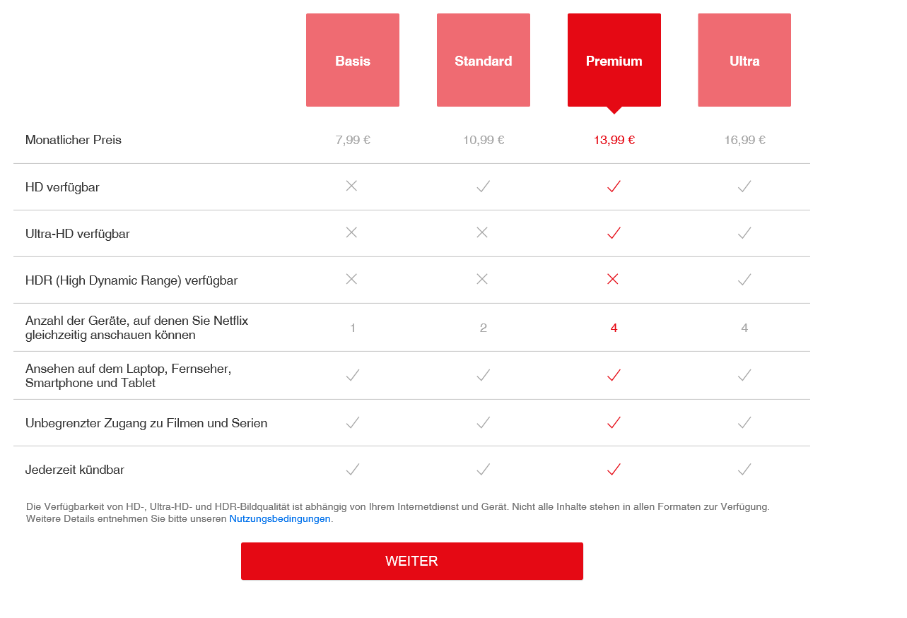 acty schrieb:Wenig zur Klärung trägt bei, dass der Test nicht allen Anwender angezeigt wird und nicht in allen Dokumenten von Netflix abgebildet worden ist. Auf verschiedenen Browsern werden jeweils unterschiedliche Erläuterungen zu den Abos aufgezeigt.