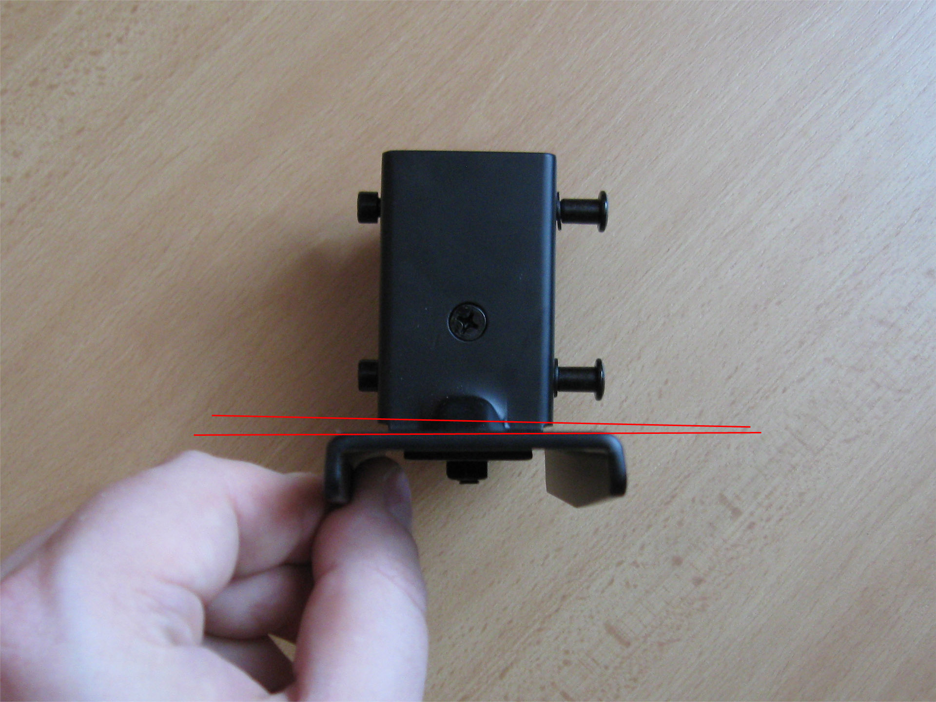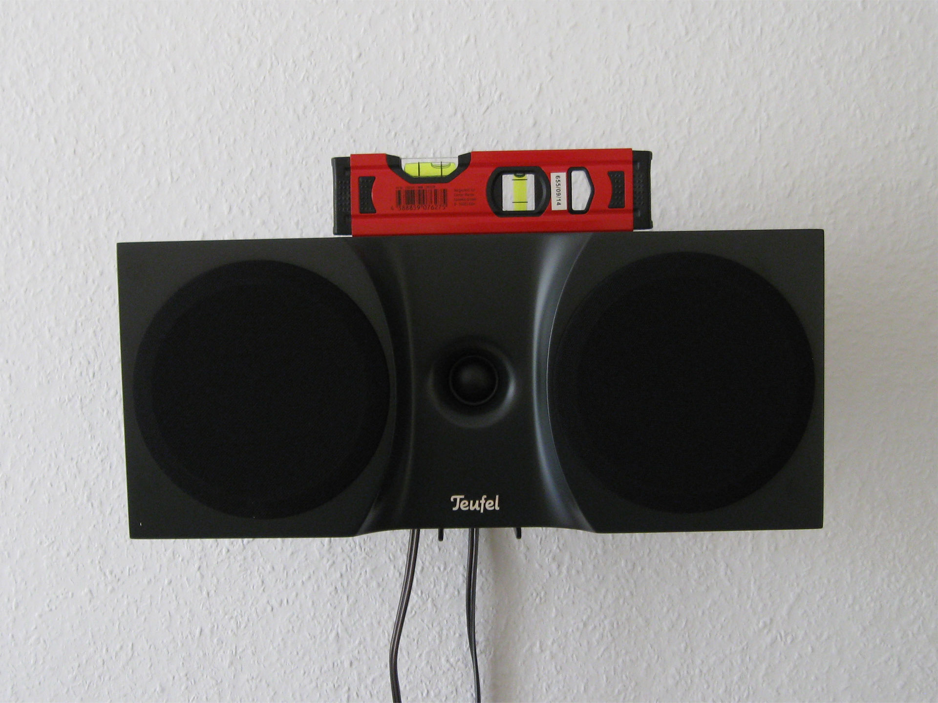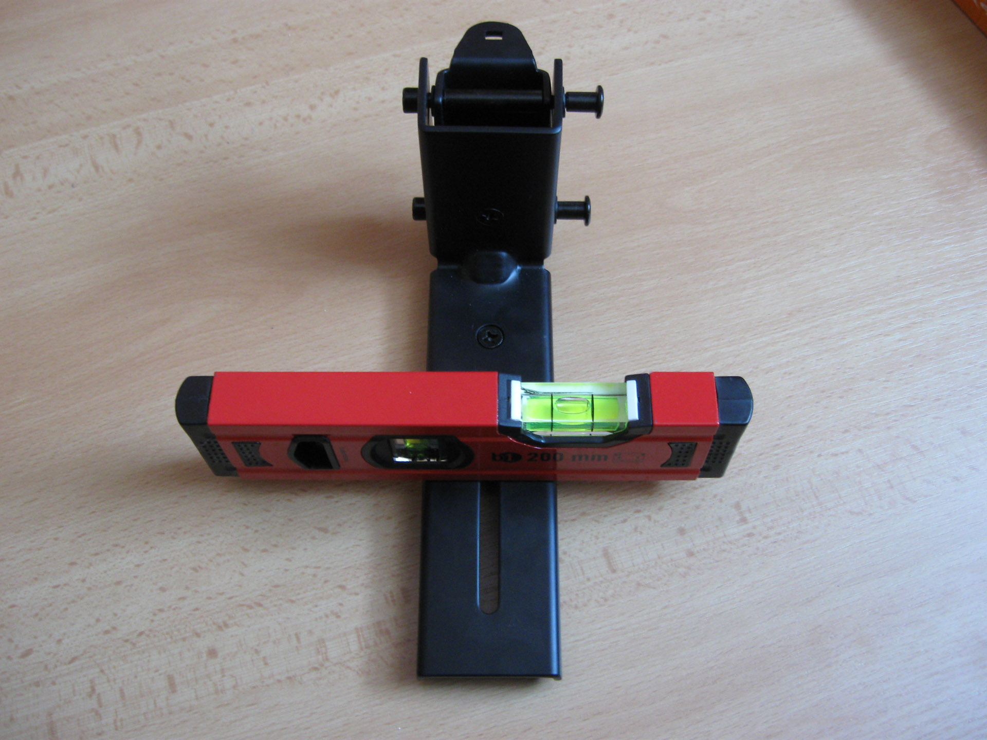 Leider hat er einen Produktionsfehler: der Winkel ist schief und ein Lautsprecher lässt sich damit nicht waagrecht anbringen.