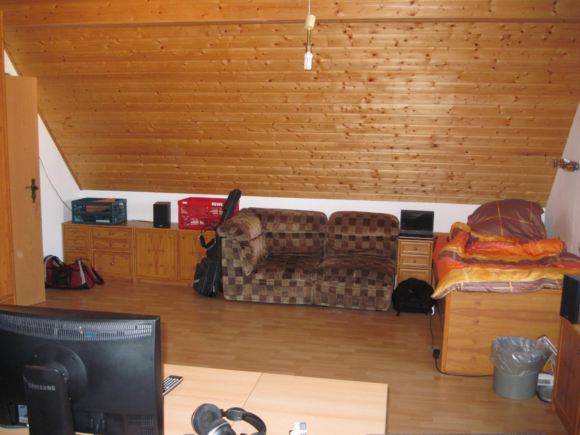 Mein Wohnzimmer, sieht ähnlich aus, ist auch ne Dachwohnung mit zwei Schrägen, Echtholzdecke, nur das bei mir im Hörbereich halt Teppich verlegt ist, welcher etwas dämpfend wirkt.