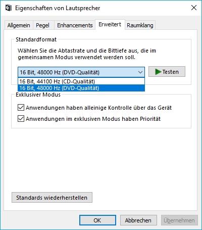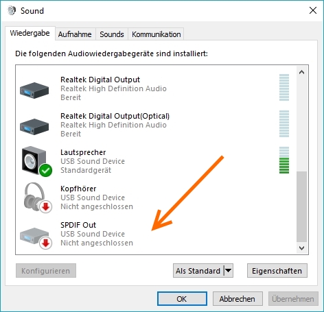 - Audio-Renderer auf den digitalen Ausgang stellen welcher mit dem Subwoofer verbunden ist
