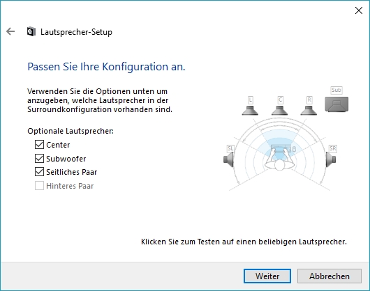SL und SR sind das hintere Paar, die Ausgabe erfolgt korrekt
