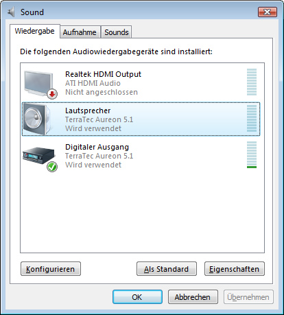 Ich habe ein Teufel Concept E² und habe mir eine Terratec Aureon 5.1 SOundkarte gekauft.