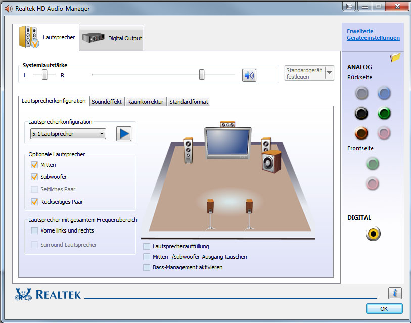 Ich benutze Win 7 Enterprise, Zotac ION ITX-A Mainboard mit ner Realtek 5.1 Soundkarte.
