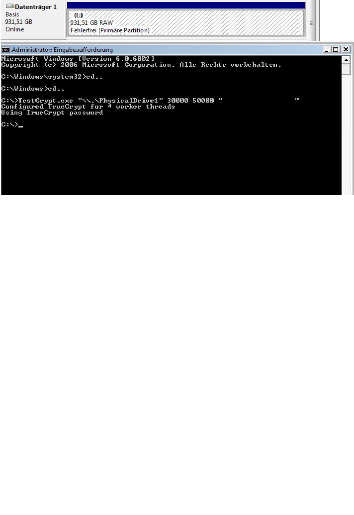 Edit: Gestartet hatte ich mit TestCrypt.exe "\\.\PhysicalDrive1" 30000 50000 "Passwort"