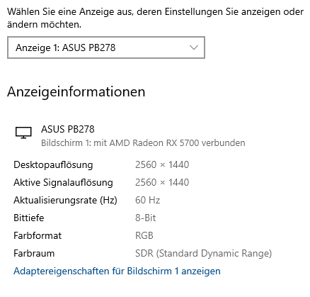 Nutze 2 Bildschirme, einmal einen alten TV (Samsung c650 FHD) -Hauptbildschirm - und einmal einen PC Monitor (Asus PB278QR WQHD) - erweiterte Anzeige.