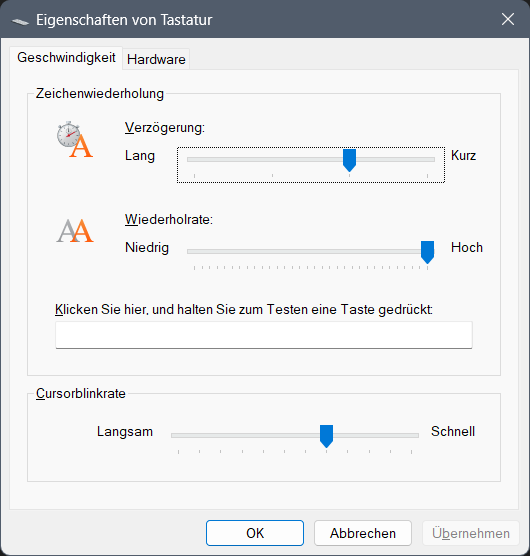 habe eine neue Tastatur, die Corsair Galleon S100. wenn ich jetzt eingetippten Text durch dedrückthalten der backspace Taste löschen will geht das nur sehr langsam. Quasi Buchstabe für Buchstabe... finde keine einstellung dafür. google hat gesagt ich soll die reaktionszeit unter tastatur einstellungen ändern. die brachte jedoch keinen erfolg. Hat vielleicht jemand eine idee ?