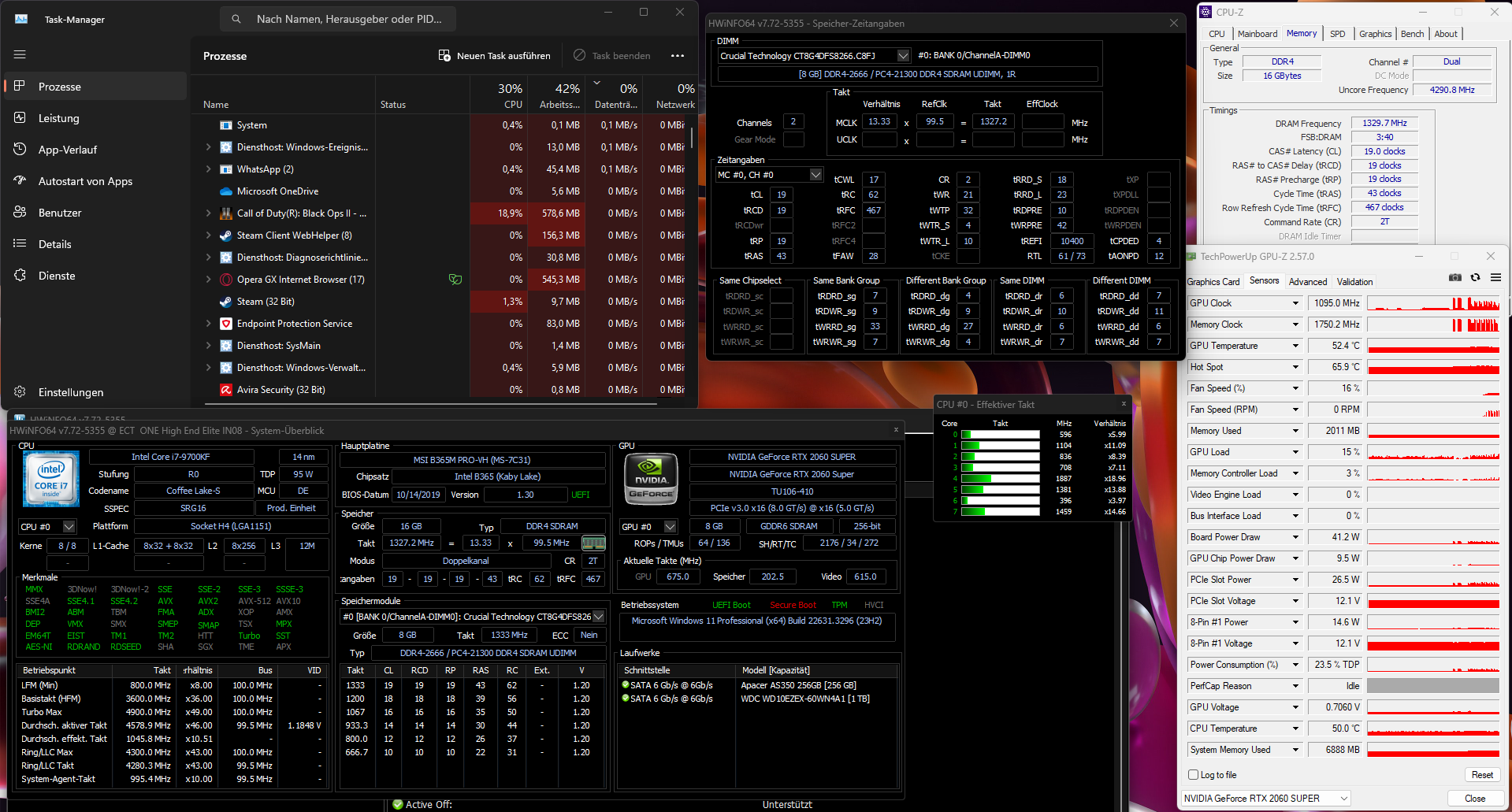 - Arbeitsspeicher (RAM): Crucial 8GB DDR4-2666 (CT8G4DFS8266) x2 2667 MHz