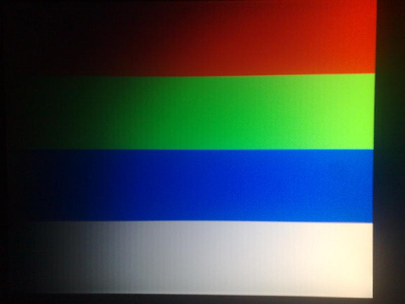 Der Monitor fing an zu blinken, schwarz -> weiss -> grau und dann ein Buntes Testbild (siehe angehängt Grafik).