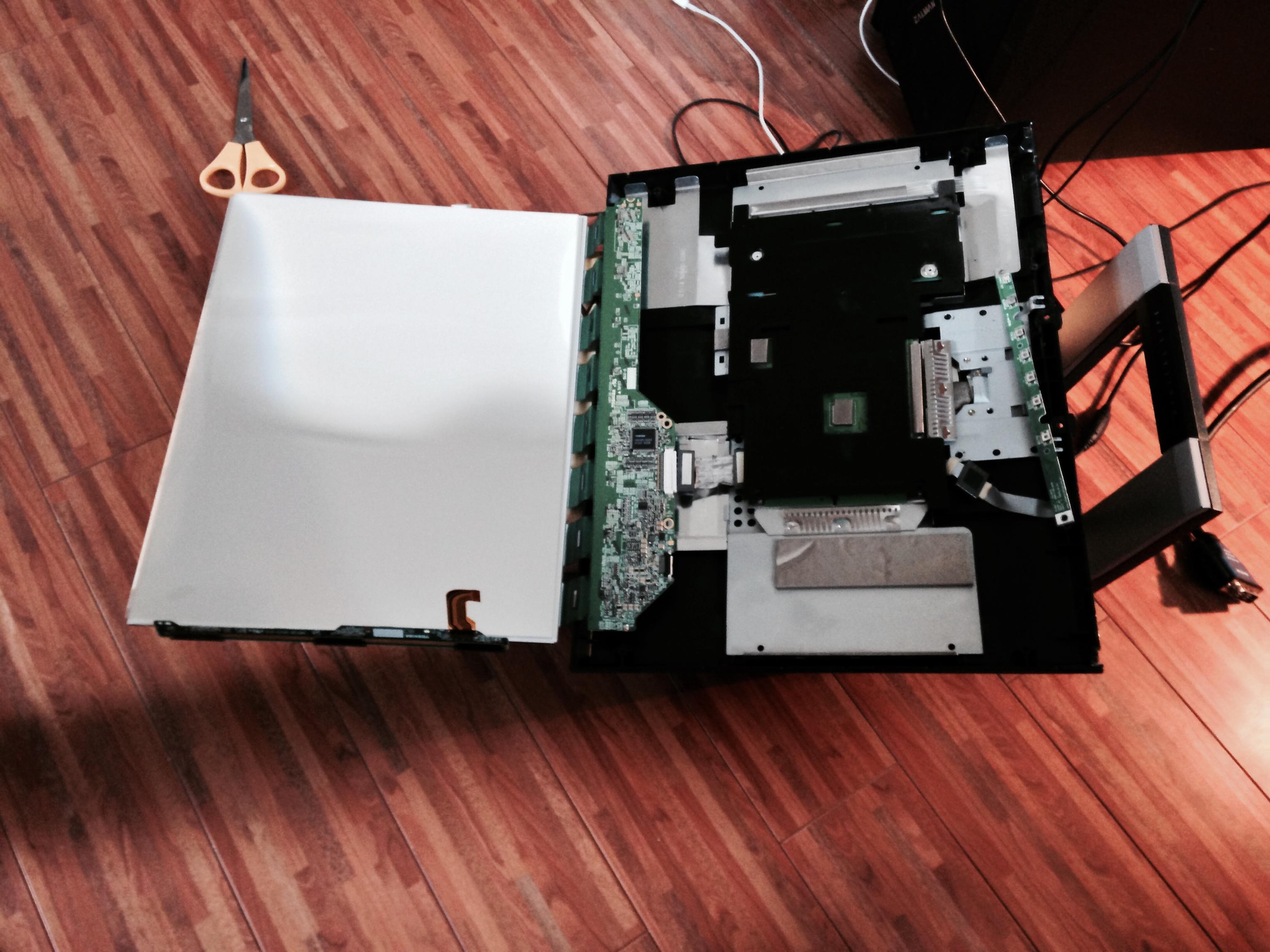 ich möchte mir einen Heimoinobeamer aus einem Overhead Projektor und einem TFT-Panel bauen. Dafür versuche ich gerade ein TFT-Panel aus einem Monitor auszubauen.