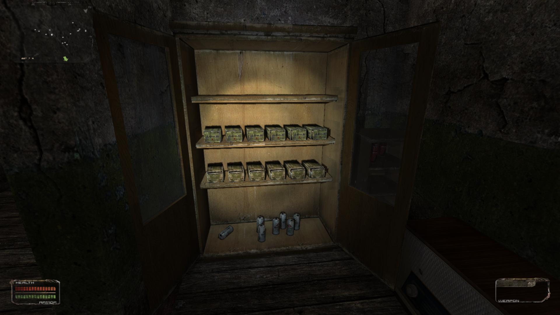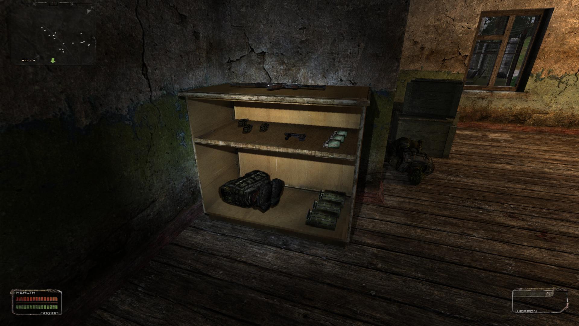 Ist eigentlich fast nur eine kosmetische Angelegenheit. Bis auf die AK-74, AKM-Ammo und die Granaten, war der Rest schon auf'm Dachstock der Barracke vorhanden. Aber jetzt darf sich das ganze auch "Waffenkammer" nennen.