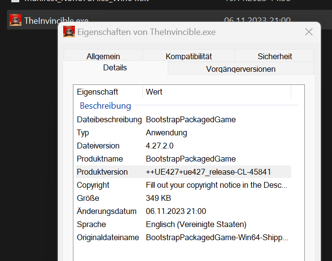 @Vitche Und zum Thema UE4 oder UE5: Wenn diese Info in der .exe-Datei hier korrekt ist, ists wohl die UE 4.27.