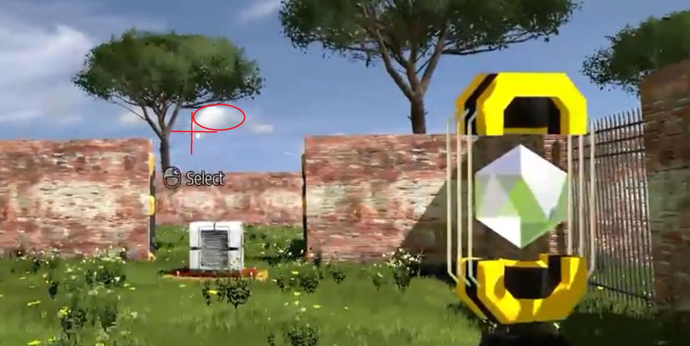 Er klickt ein Ziel an was außerhalb des eigentlichen Levels liegt. Rotes Kreuz = Ziel, roter Ring = Wolke zur Orientierung