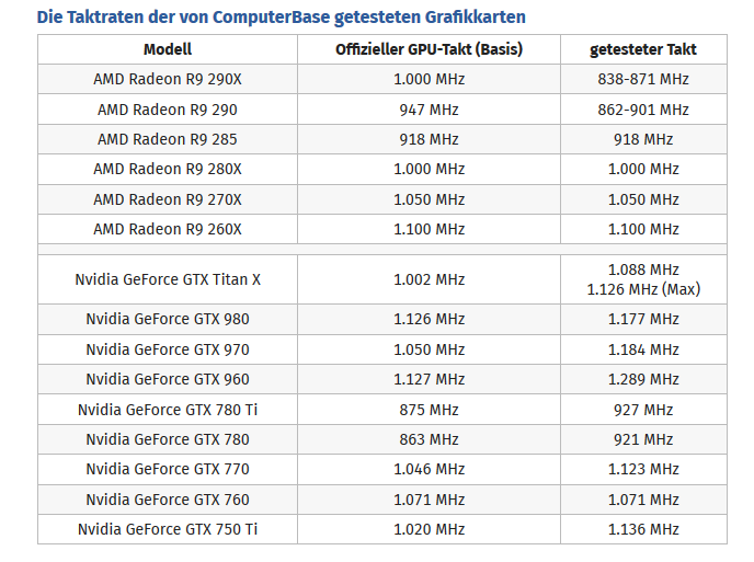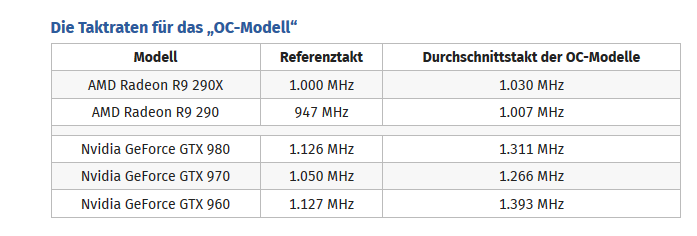 das könnte man aber mit takt angaben alles beheben dann weiß ich zb ok die 780ti hat mit 875 mhz gearbeitet und die 970 hat oc wert ca 1220 mhz core takt gehabt.