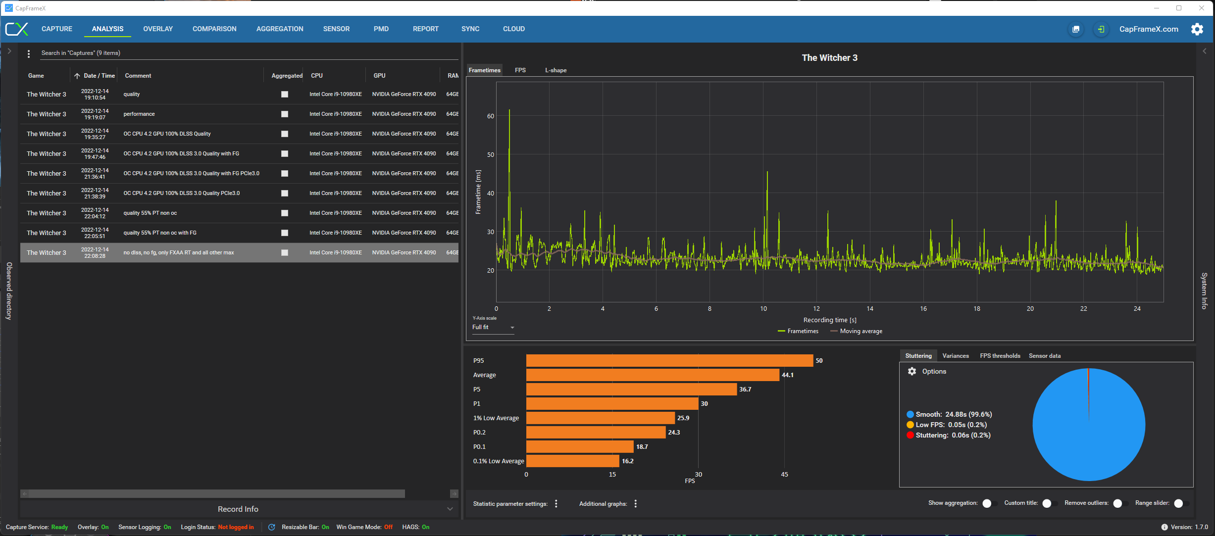 RTX3070 8GB, Ryzen 7 5800H, 32GB 3200MHz. FPS sind dann von etwa 34FPS auf 10 gefallen.