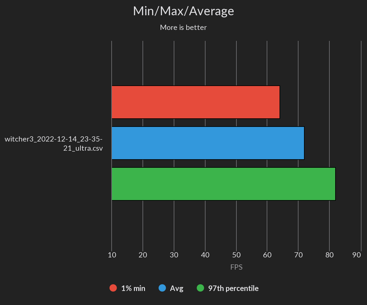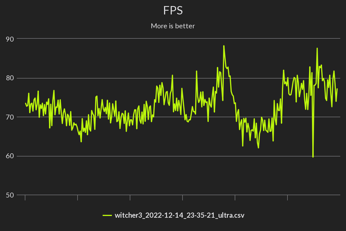 Auflösung 3840 x 2160, natürlich kein RT, kein DLSS, kein FSR, nur TAAU, kein Hairworks, Resultat ca. 70 - 80 fps. Musste TAAU einschalten da das Bild sonst insgesamt zu unruhig war, und die Haare des Witcher wie Popkorn gewirkt haben.