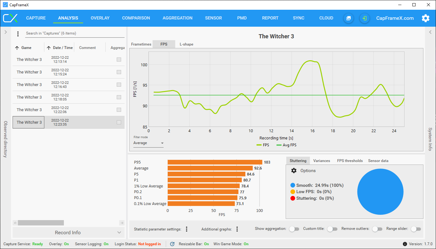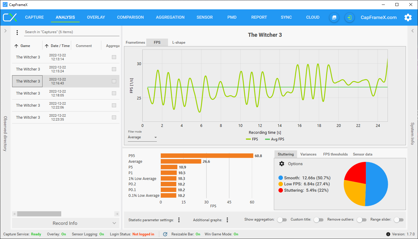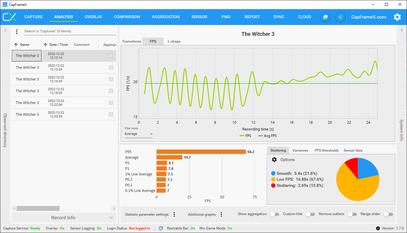 CapFrameX Ergebnisse im Anhang: RT ULTRA, RT, HIGH, ULTRA (HÖCHSTE)