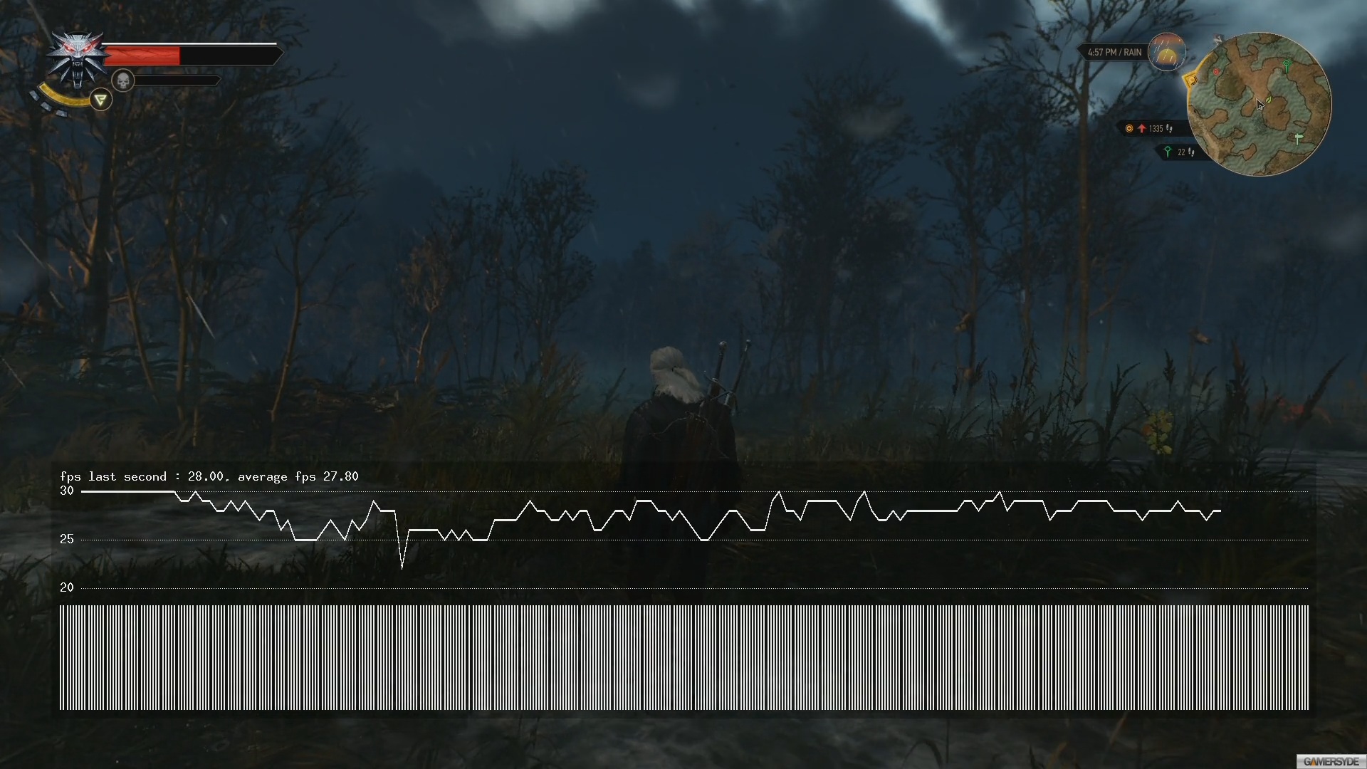 Ich hatte noch Bilder von der Performanceanalyse von Gamersyde zwischen den Patch 1.03 und 1.04/05 was man gut sehen kann ist unten die einzelnen Bilder auf dem Frametimer so gleichmäßiger der ist umso flüssiger das Bild.