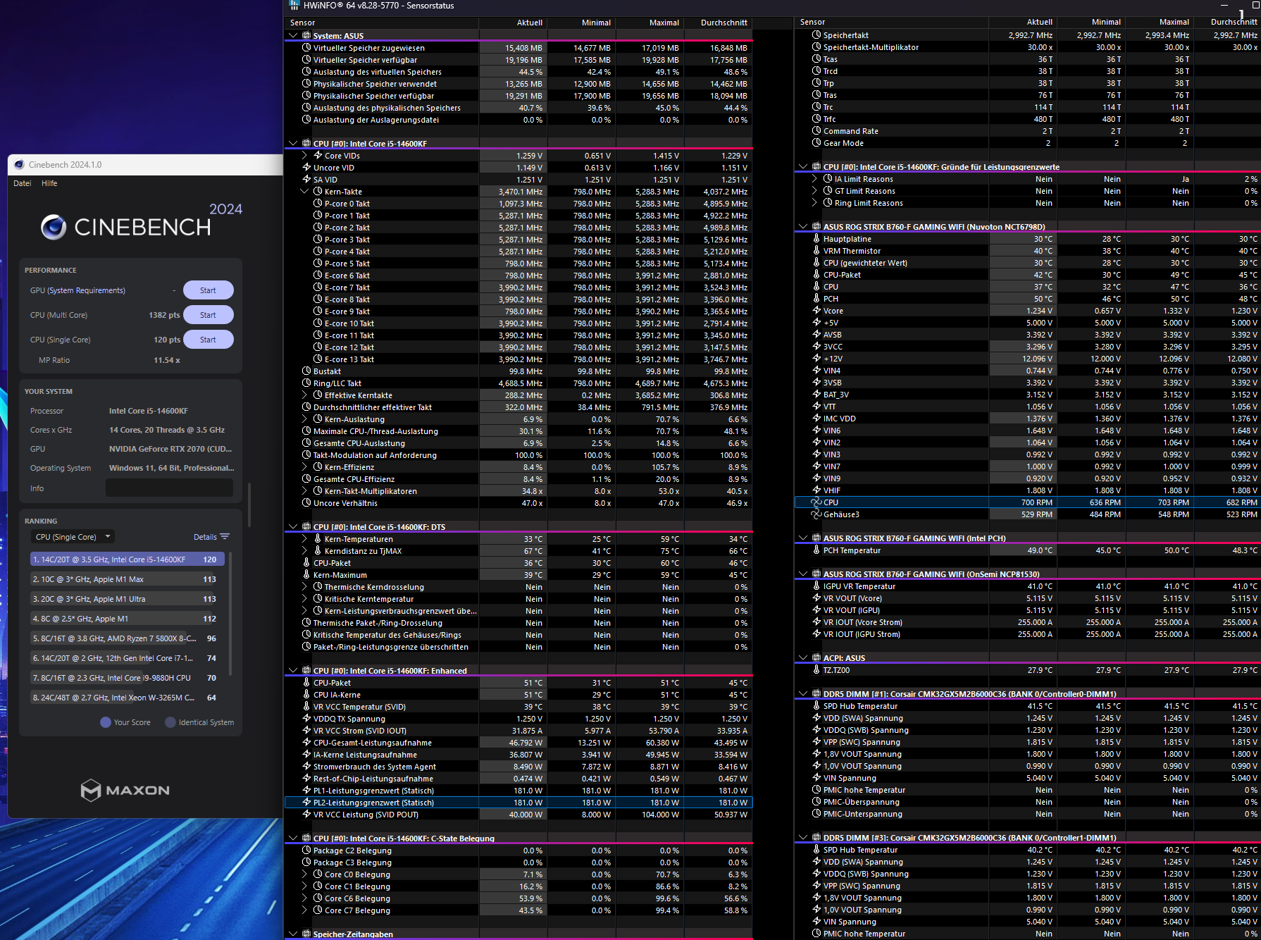 Was bei einem 14600Kf bei R24 rauskommt, hängt vom gesetzten PL ab. Korrekt gesetzt also 125/181/56sec kommt ca. 1280 Punkte raus.