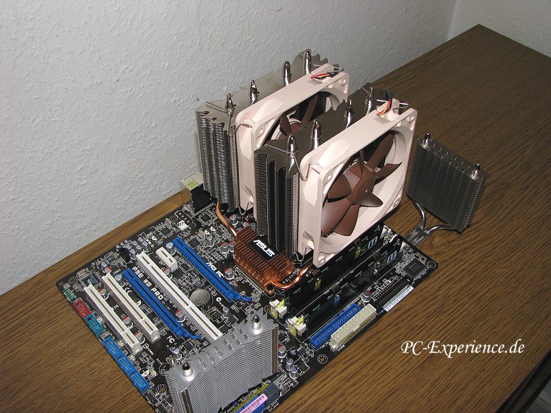 Der Kühler ist übrigens zwar primär für einen 92er-Lüfter ausgelegt, kann aber lt. Test alternativ (wenn dieser denn in's Gehäuse passt) auch mit einem 120er-Lüfter ausgestattet werden, entsprechende Befestigungsklammern sollen beiliegen. Damit ist man hinsichtlich Kühlleistung/Lautstärke optimal flexibel