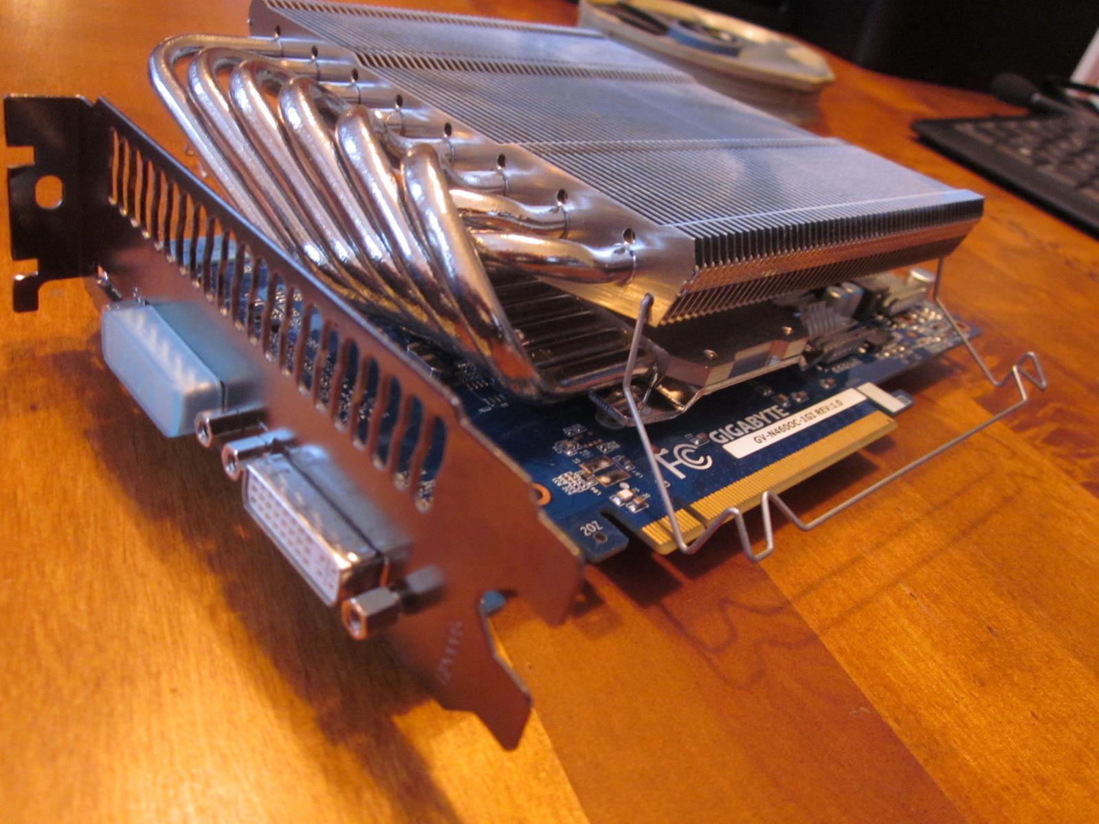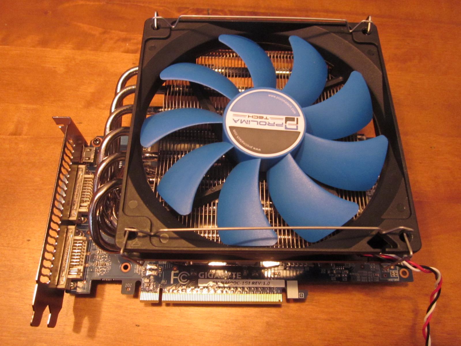 Der Grund, mir einen Aftermarket Kühler für meine Gigabyte GTX 460 1GB OC zuzulegen, war die Tatsache, dass die Lüfter des Originalkühlers schon nach kurzer Zeit leicht und zunehmend stärker zu schleifen begannen und dadurch dann unangenehm aus meinem System herauszuhören waren.