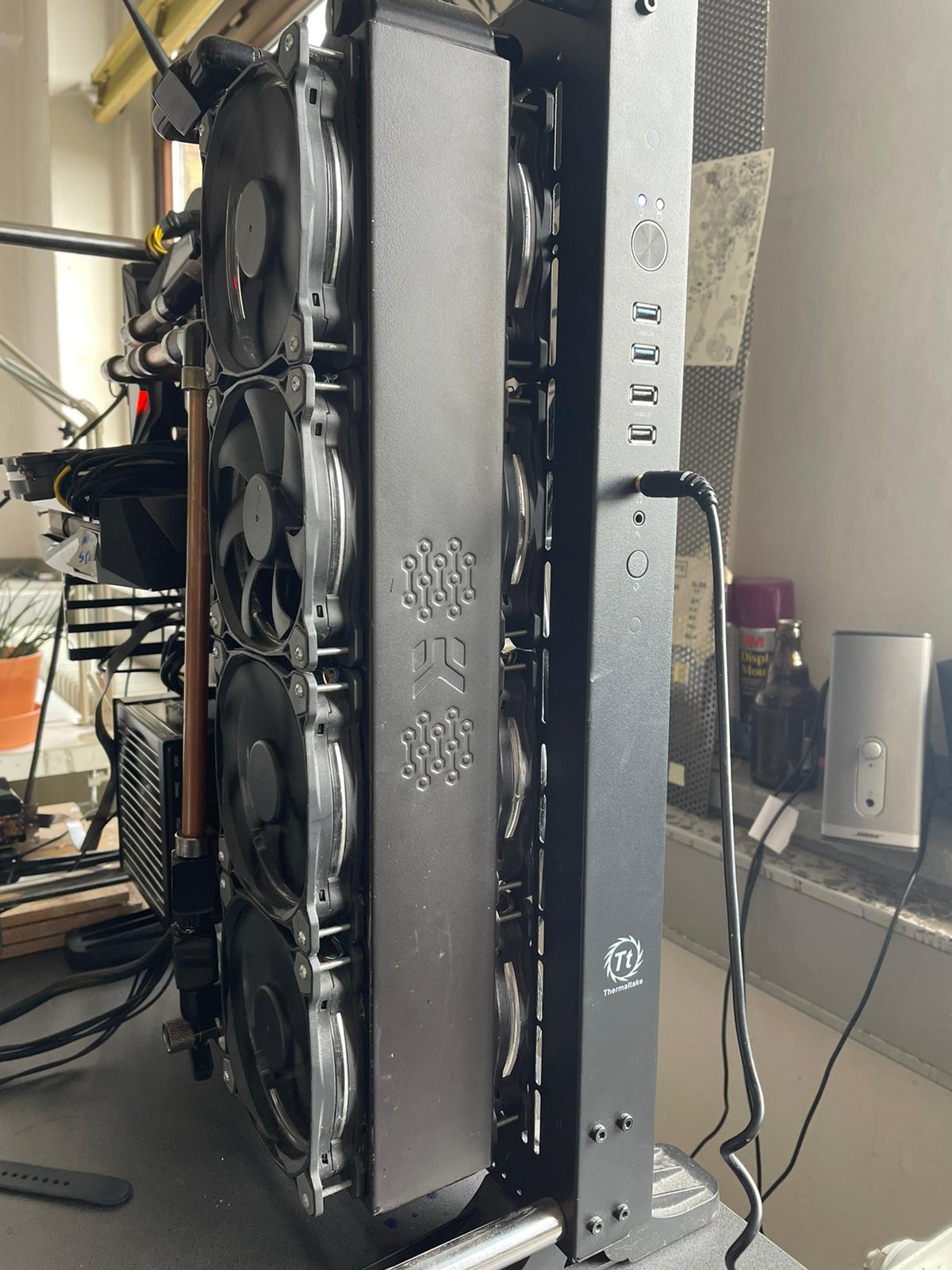 4x120mm Lüfter, 60mm Radi, 4x120mm Lüfter, 60mm Radi und eine weitere Reihe Lüfter. Schaffen die 12 Lüfter einen ordentlichen Luftdurchsatz? Es sind bisher Thermaltake Riing.