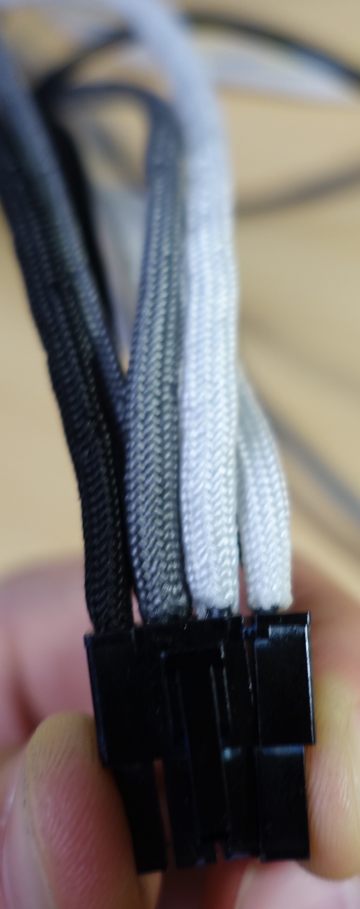 Die Krönung war dann, dass ausgerechnet der vorletzte Strang des PCIe-Kabels beim Rausziehen "riss" - der Molexstecker blieb also im Anschluss stecken, und mit meinen getunten Büroklammern kam ich nicht mehr weiter. Ich werde wohl oder übel bei Gosumodz einkaufen müssen, um das wieder hinzubiegen. Das PCB-Kabel ist ohnehin ein zusätzlicher Sonderfall, den ich so nicht bedacht hatte: hier ist das Kabel fester Teil des Netzteils und kann nicht etwa einfach abgesteckt werden. Da komme ich nicht um Extensions, es sei denn ich setze mein Netzteil aufs Spiel.