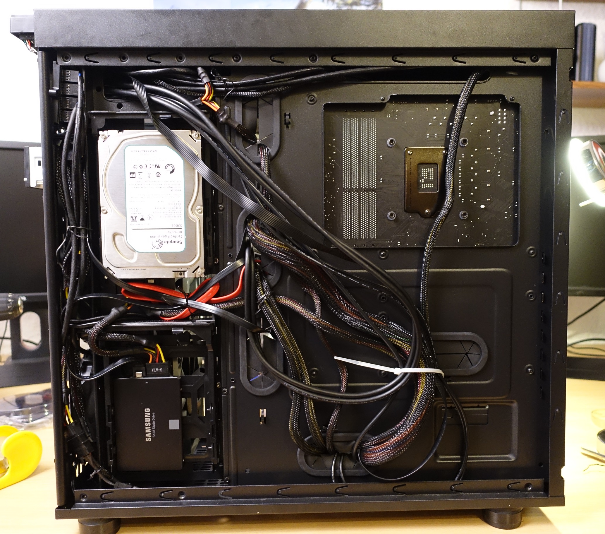 - Einbau Netzteil, Festplatten und Kabelmanagement