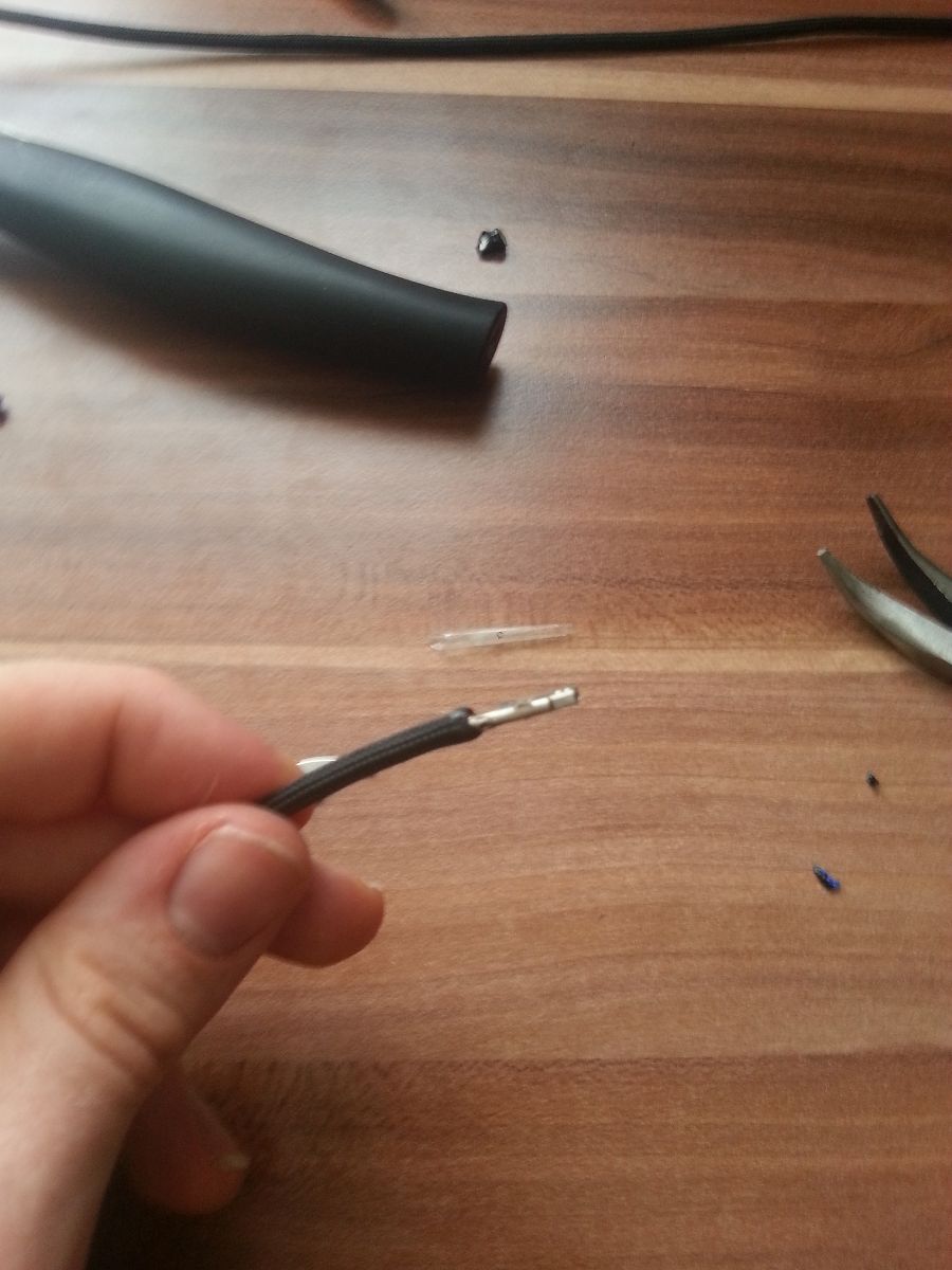 Hinzu kam, dass das Verengen der Sleeve-Enden mit dem Feuerzeug den Sleeve nicht wirklich fixierte, wie es in einigen Youtube-Videos demonstriert wird. Also entweder mache ich da etwas grundlegend falsch oder man muss da extrem behutsam rangehen und nicht mehr an den Sleeves rütteln. Es war ja schon schwierig, die gesleevten Kabel wieder in den Anschluss zu schieben. Also Sleeven ohne Shrink ist wohl nichts, es sei denn mir kann das jemand nochmal näherbringen.