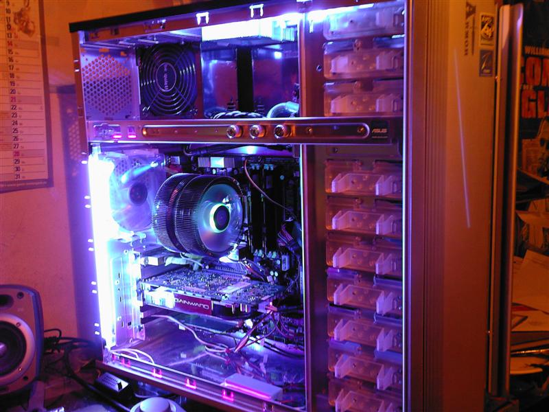 Das case sollte auch nicht strahlen was grad geht sondern richtig edel ausschauen und da sind die 2 led-lüfter und die leiste vorne beleuchtungstechnisch gesehen leicht ausreichend. Das ding wird bald als rennsimulator verwendet (Rally-Auto, 40" Screen und Lenkrad, Pedale, Gangschaltung und so...