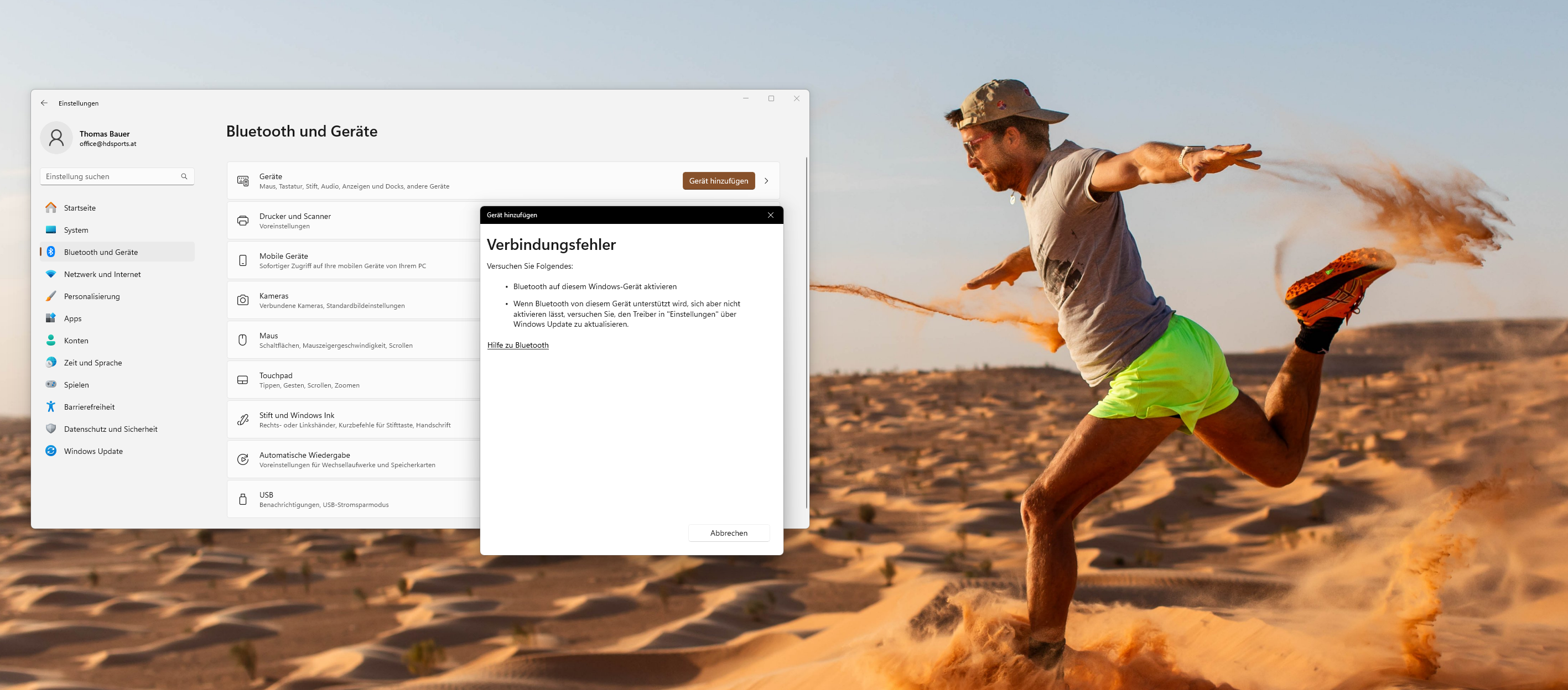 Auch in den Einstellungen kann ich kein Bluetooth-Gerät verbinden. Was läuft da schief? Gibt es da irgendein Tastenkürzel, mit dem man womöglich Bluetooth deaktiviert hat