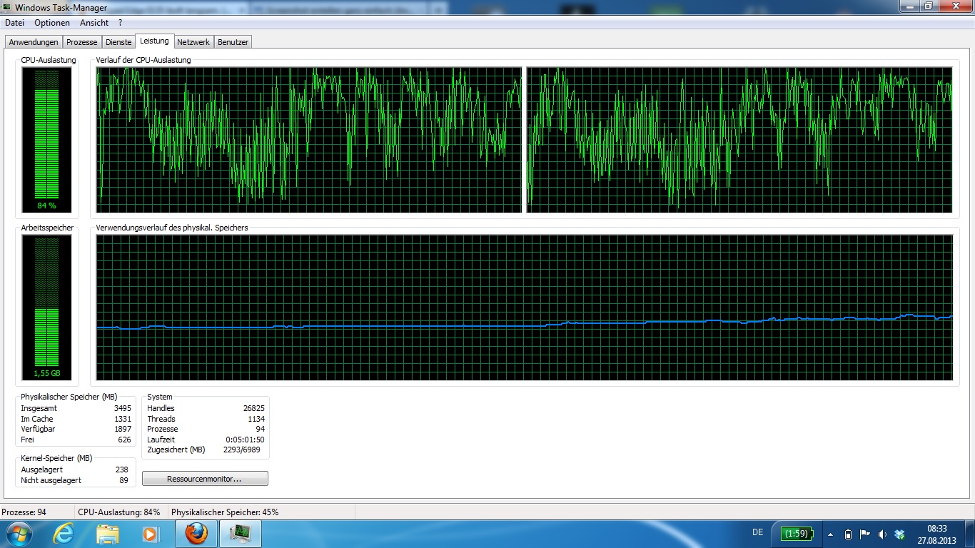 Edit: Firefox beendet: CPU schwankt nur noch zwischen 2 und 50%. Sobald ich dann ein Programm öffne 100%. Ist das normal?