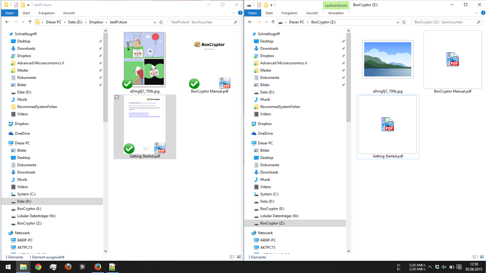 Mit dem Programm BoxCryptor 1.5 1.7 und die neueste VeraCrypt ausprobiert.