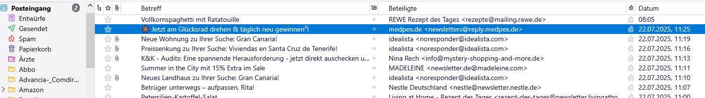 Auch die nachfolgenden E-Mails lassen sich deshalb nicht bearbeiten von gestern