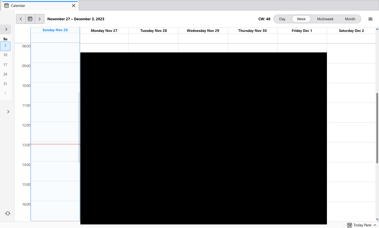 Ich setze seit einigen Tagen Thunderbird als Mail-Client und Kalender ein. Ich finde es toll, wie anpassbar die Oberfläche ist. Leider vermisse ich noch eine Option, die für mich sehr hilfreich wäre. Gibt es die Möglichkeit im Kalender nicht die Woche von Montag - Sonntag anzuzeigen, sondern die nächsten X Tage. Sprich heute ist Sonntag. Also wird in der Kalenderansicht der Sonntag ganz links angezeigt und die kommenden X Tage folgen. Und so schiebt sich das jeden Tag weiter. Am Sonntag interessiert mich nicht mehr was ich letzten Dienstag gemacht habe, sondern eher was am kommenden Dienstag ansteht. Gibt es so eine Einstellung? Oder kennt jemand ein Plugin, was die Funktion bereit stellt? Die Monats-/Multiweek-Ansicht ist auf meinem Notebook leider zu klein und schneidet die Eintrags-Titel ungünstig ab.