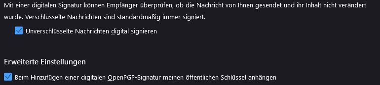 Unterhalb des Punktes bzgl. dem hinzufügen einer digitalen OpenPGP-Signatur bei Erweiterte Einstellungen folgt dann auch gleich der für die Kompatibilität mit Autocrypt