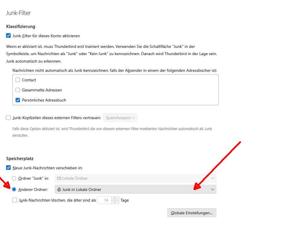 wie kann ich bei Thunderbird gemeinsamer Papierkorb erstellen oder das die E-mails da landen ohne das ich , die Ganzen E-mails (Adressen) auch für den Posteingang in den Lokalen Ordner Verschieben muss bzw so einstellen .... für den Junk Ordner scheint es ja zu funktionieren ...