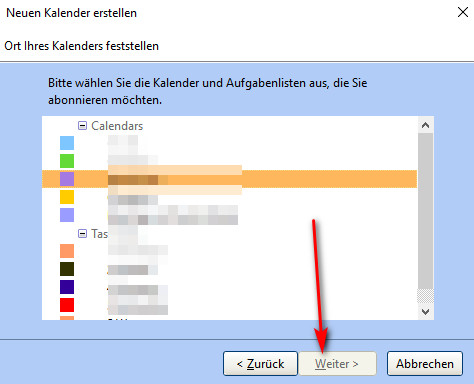 Eigentlich müsstest Du nun links neben der Farbe ein Selektionskästchen für jeden Kalender haben, indem Du diesen zu- oder abwählen kannst.