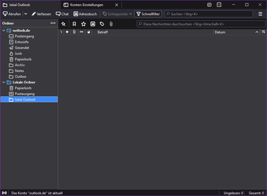 Der Ordner "lokal Outlook" wurde unter "Lokale Ordner" erstellt.