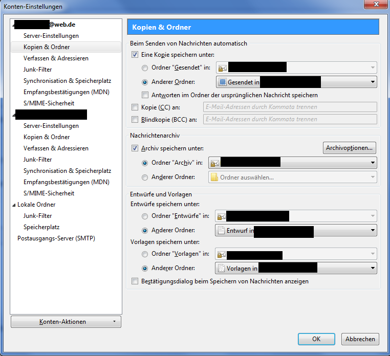 Häkchen vor Eine Kopie speichern unter: Ordner "Gesendet" in: ...