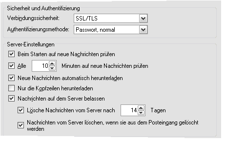 Verbindungssicherheit: SSL/TSL und Authentifizierungsmethode: Passwort normal
