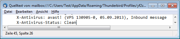 Ob der Scanner aktiv ist, sieht man im Quelltext jeder empfangenen Mail: