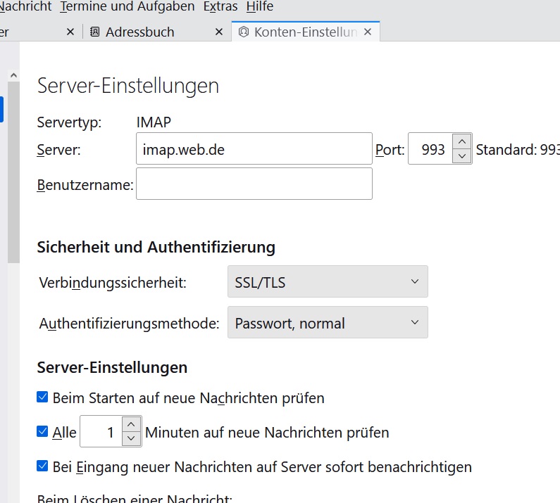 Thunderbird. "Zeitüberschreitung der Verbindung mit Server imap.xyz.xyz"
