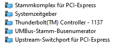 Dann habe ich herausgefunden, dass man im Bios ja auch was einstellen muss (wie gesagt - sehr grün) und habe da die Thunderbolt Option aktiviert. Trotzdem keine Veränderung - bis auf den Umstand, dass ich nun sogar das Geräusch bekommen habe was kommt wenn man eine externe Festplatte ansteckt. Aber trotzdem noch keine "offiziell" angezeigte Festplatte. Zurück ins BIOS und alles auf aktivieren gestellt. Jetzt wird mir auch die Festplatte nicht mehr im Kontrollzenter angezeigt.