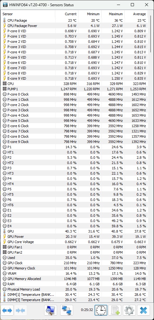 So sieht es bei mir aus nach ca. 25 Minuten Youtube, 1080p60 im Vollbild: