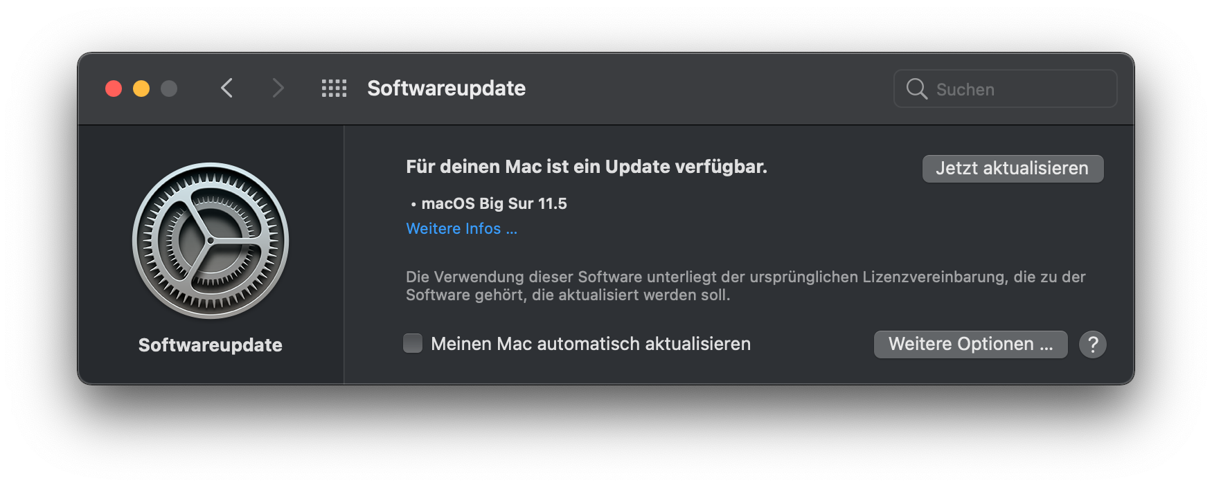 Weiß ist Mac os 11.5 verfügbar. Da ich gerade unterwegs bin. möchte ich es gerade nicht installieren.
