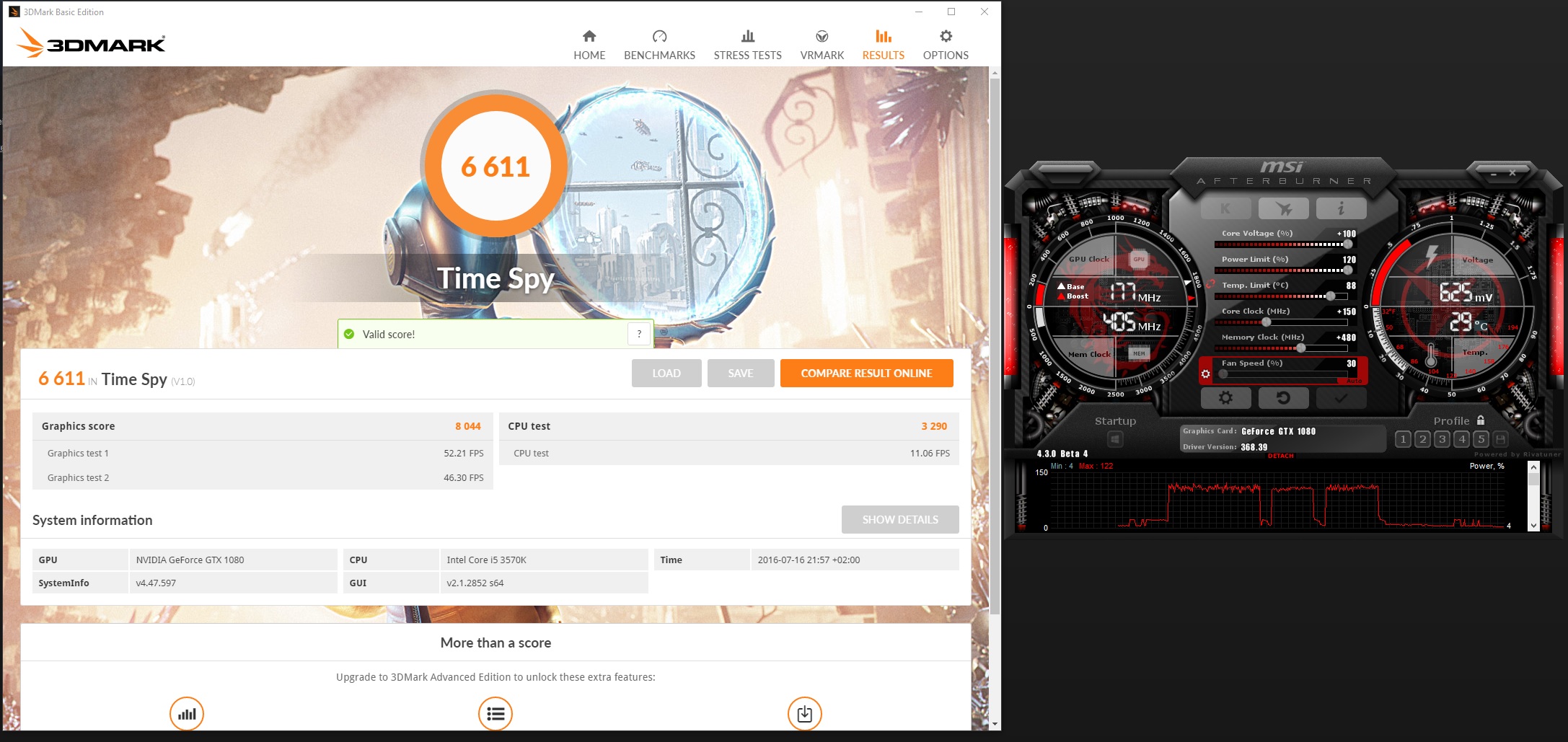 Ich habe den Bench nun auch mal laufen lassen. Mit der GTX970 und einem Boost im Bereich von 1507-1522 und Speicher +250. Dazu der 2600K @4,5. Da kam ich auf 3956 Graphic und 4024 CPU.