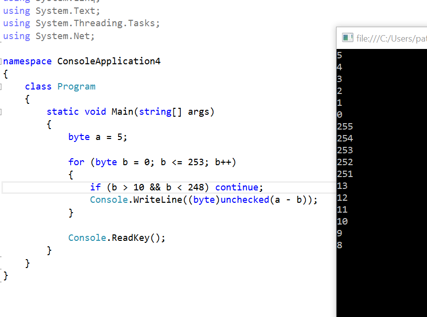 Weil 5-253 ist ja nicht 8 sondern (-)248.